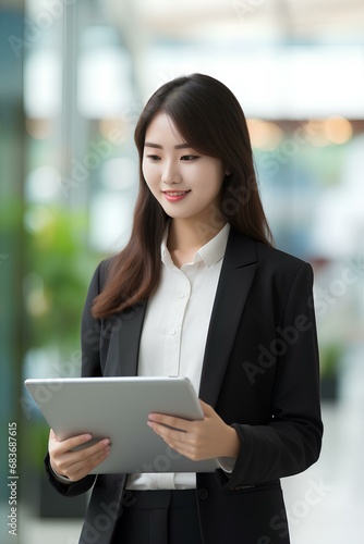 tied-up, young, korea, korean, business, woman, businesswoman, executive, holding, pad, computer, work, female, professional, employee, using, digital, tablet, device, standing, office, checking, datum, smiling, person, smile, men at work, beauty, success, working, manager, suit, corporate, confident, face, looking, occupation, cyberspace, lifestyle, online, indoor, lady, secretary, 1