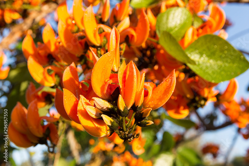 Butea monosperma or Flame of Forest Tree flowers (Flame of the forest, Bastard Teak, Bengal kinotree, Kino tree)