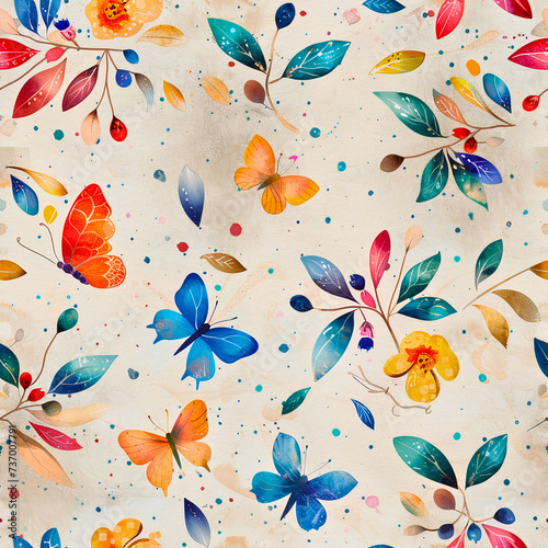 Butterfly Ballet, Butterfly Whisper, Spring Awakening, Spring Rain Melody, Spring Serenade, Seamless Floral Pattern, Wildflower, Created using generative AI