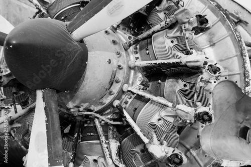 B&W Close up of Old CLASSIC airplane