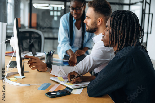 business, people, work, job, occupation, table, together, office, professional, smart, project, formal, clothes, wear, intelligence, plan, profit, be of use, success, finance, adult, modern, interior, indoor, day, career, employee, staff, facial, expression, background, communication, beautiful, personal, equipment, human, focused, computer, display, screen, technology, deadline, natural, lighting, black, african, american, ethnicity