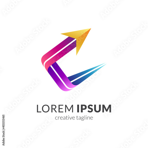 C arrow business logo template with ribbon 3d concept in multiple gradient color