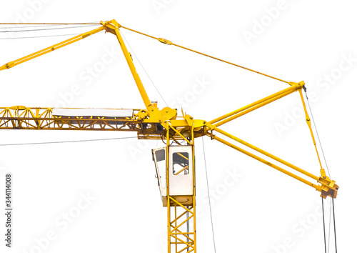 Cabin of a construction crane, tail of a tower crane at an industrial site, close-up