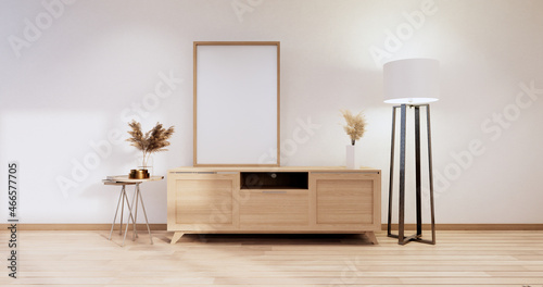Cabinet wooden japanese design on living room minimalist empty wall background.3D rendering