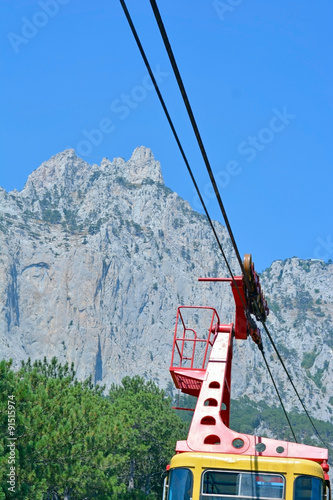 autumn, cable, cable car, cableway, car, coast, coastline, crime, crimea, crimean, day, forest, landscape, mountain, outdoors, panorama, passenger, plateau, road, scenery, scenic, south, southern, sunny, tour tourism, transport, travel, vale, view, way, wood