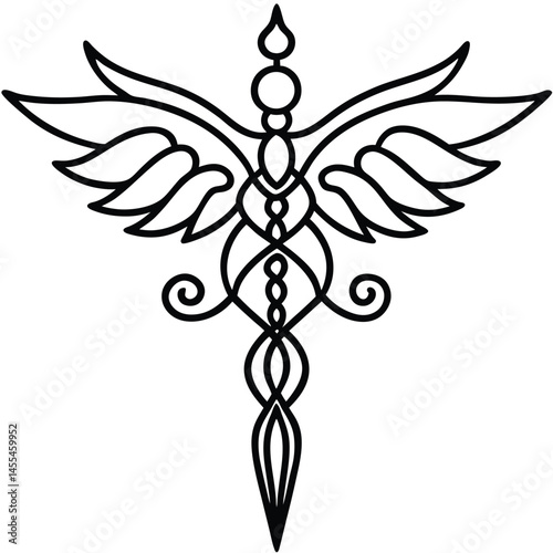 Caduceus Medical Symbol vector Silhouette illustration Abstract ornamental caduceus with symmetry