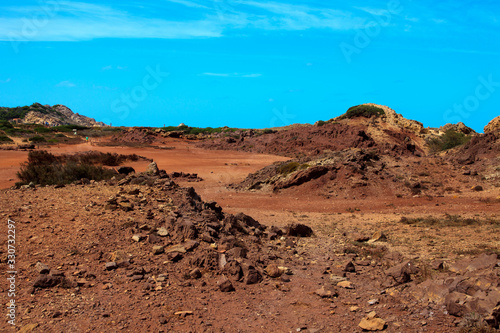 Cala Pregonda, Menorca / Spain - June 23, 2016: Cala Pregonda Biosphere Reserve area view, Menorca, Balearic Islands, Spain