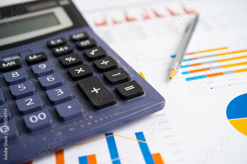Calculator on graph paper. Finance development, Banking Account, Statistics, Investment Analytic research data economy, Stock exchange trading, Business company concept.