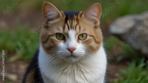 cat, calico, felino, pet, animal, mammal, cat, kitten, eye, green, fur, white, orange, black, paw, whisker, face, portrait, closeup, garden, grass, ground, nature, cute, adorable, lovely, beautiful, pretty, domestic, short, hair, animal portrait, wildlife, domestic cat, companion, friends