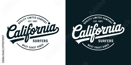 California surfers retro badge emblem with west coast vibes vintage typography for ocean lifestyle apparel and t shirt design