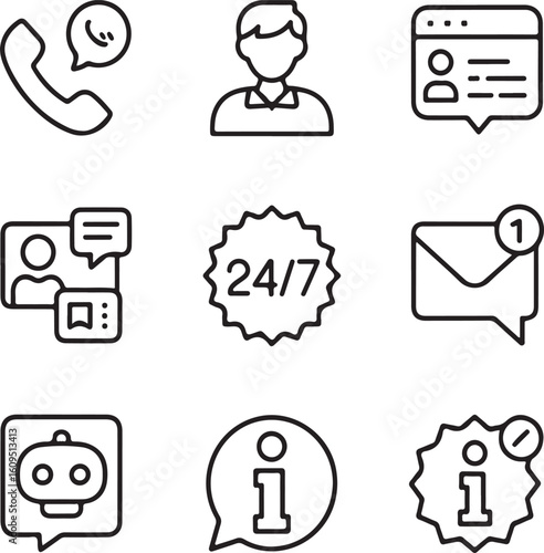 Call Center & Client Care Icons – Minimal Thin Line Support Vector Set