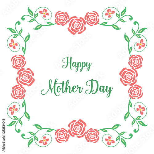Calligraphic text of mother day, with wallpaper of rose flower frame. Vector