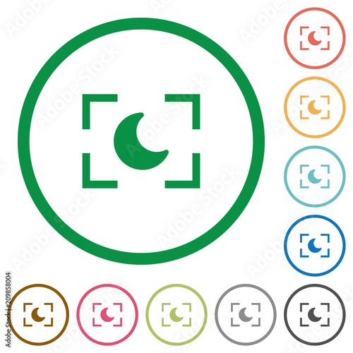 night, dark, mode, setting, camera, cam, photo, photograph, photographing, picture, digital, art, snapshot, lens, equipment, device, technology, icon, symbol, set, flat, plain, simple, round, circle, frame, outline, stroke, contour, design