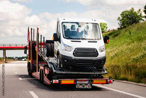 camion transportant une fourgonette