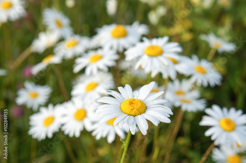 flower, daisy, chamomile, herb, chamomile, white, green, nature, background, summer, spring, field, flora, plant, closeup, natural, season, group, wild, blossom