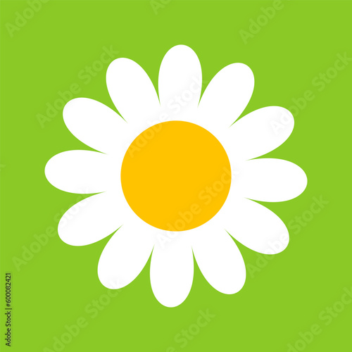 Camomile, flower great design for any purposes. Cartoon illustration with white camomile on green background.