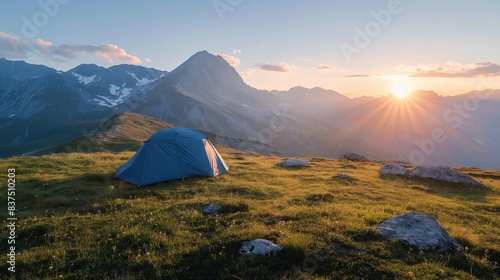 camping, tent, mountain, sunrise, nature, landscape, scenery, adventure, travel, hiking, scenic, morning, sun, grassy, ridge, peak, vale, wilderness, tranquil, serene, picturesque, breathtaking, exploration, travel destination, panoramic, dawn, mountain view, alpine, scenic view, peaceful, summer, trekking, summit, fresh air