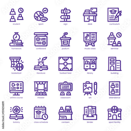 Campus Life Icon pack for your website, mobile, presentation, and logo design. Campus Life Icon line basic color design. Vector graphics illustration and editable stroke.