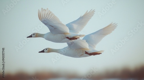 canada geese flying across a pond during autumn