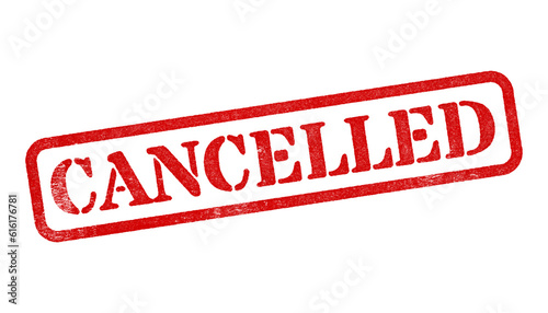 Cancelled red rubber stamp isolated on transparent background with distressed texture effect