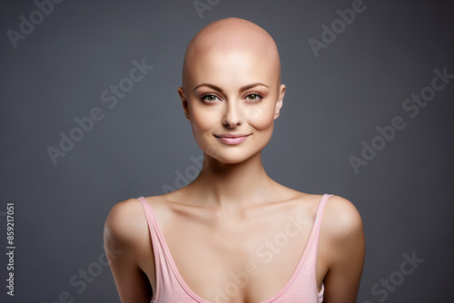 Cancer awareness conceptual Generative AI illustration with bald hairless person after chemo treatment