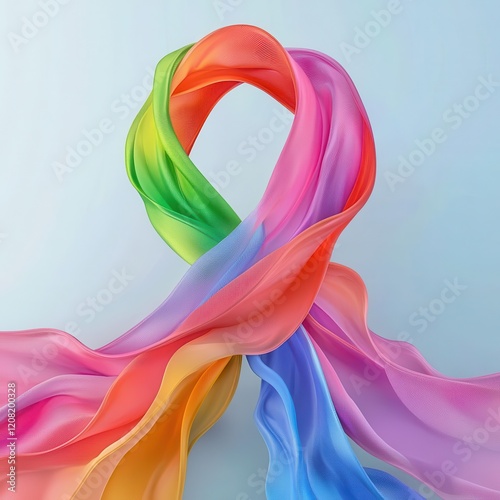 Cancer Screening Concept, Cancer awareness ribbon, vibrant colors, symbolic backdrop, 3D illustration