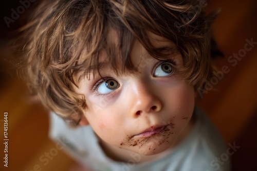 portrait, children, children, boy, girl, face, messy, hair, chocolate, dirty, looking, up, wide, eye, candid, warm, soft, natural, light, innocent, happy, joyful, sweet, eating, food, person, people, youth, childhood, playful, cute, day, indoor, realism, photo, stock, image, emotion, lifestyle, mess, adorable, expression, closeup, brown, cocoa
