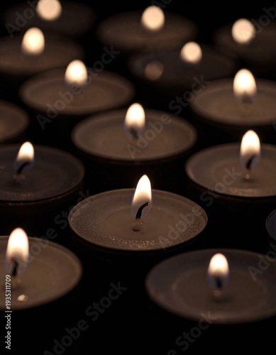 Candles casting a warm, soft glow in a dimly lit atmoshphere, flickering flame, soft shadows, candle decoration, vintage vibe
