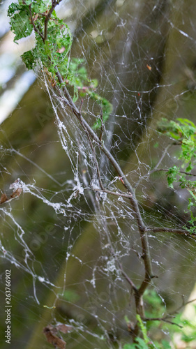 Cankerwork larva silk covering woodland trees