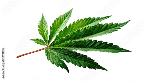 Cannabis Leaf: A detailed, vibrant photograph of a single cannabis leaf, showcasing its unique serrated edges and rich green color, against a bright, clean backdrop.