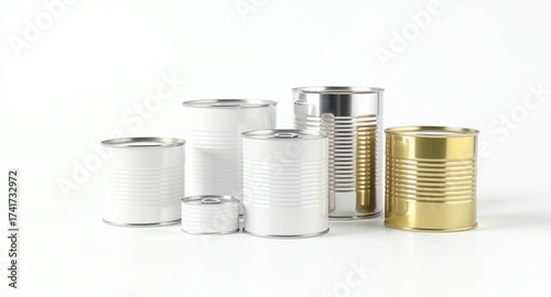 can, canned, tin, aluminium, container, cardboard box, product, food, storage, blank, design, metal, silver, gold, gold, white, isolated, assortment, variety, different, multiple, group, collection, studio shot, shiny, empty, branding, advertisement, presentation, commercial, grocery, retail, preserve, preserved, illustration, template, object, closeup, indoor, metallic, isolated on white, food industry, preservation, meal, cooking
