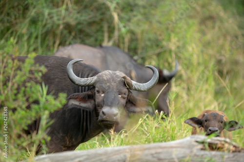 Cape buffalo breeding herds and their associated dagga boys or dominant males.