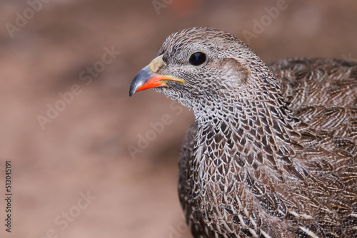 Cape Spurfowl Bird Head Portrait Close-up (Pternistis capensis), Mossel Bay, South Africa