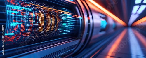 Capital cost concept. Futuristic tunnel illuminated with vibrant colors and digital data streams.