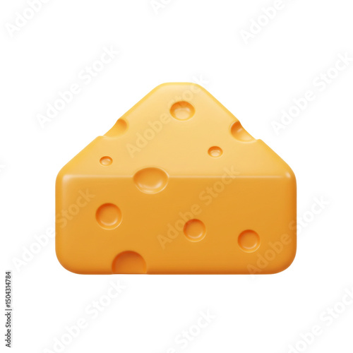 Captivating 3D Render of a Textured Cheese Wedge Against a Pristine White Background Showcasing its Unique Form and Detail