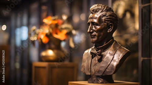 Captivating bronze bust of a famous and influential musician showcased in a grand and historic performance hall honoring the enduring legacy and cultural significance
