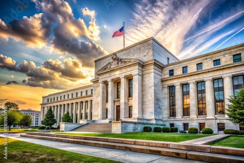 Captivating Candid Photography of the Federal Reserve Bank Building Showcasing Distinct Columns and Architectural Elegance in Urban Landscape