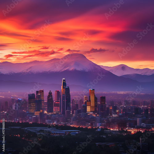 sunset, city landscape, skyscraper, mountain, city life, modern architecture, city landscape, dusk, evening scene, metropolis, outdoors, twilight, serene, calmness, majestic, scenic, panorama, breathtaking, architecture, horizon, distance, contrast, atmospheric, dreamy, wanderlust, tour tourism, destination, adventure, get-away, journey, expedition, sightseeing, backpacking, vacation