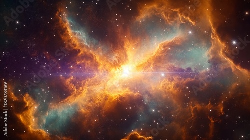 Captivating Exploration of a Fiery Nebula with Vibrant Space Colors and Emerald Gradients Shining