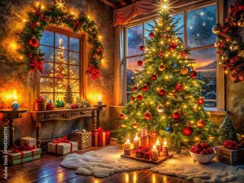 Captivating Low Light Christmas Drawing with Warm Glow and Festive Elements for Holiday Spirit
