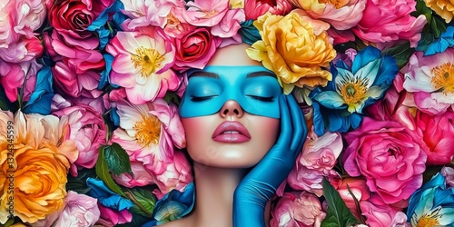 portrait, composition, colours, flower, ai, abstract, young, beauty, background, pastel, female, attractive, girl, love, over, woman, design, creative, hair, cosmetic, fun, high-coloured, concept, face, trend, spring, idea, her, pretty, skin, art, chaplet, therapy, optimistic, natural, colourful, mask, beautiful, care, facial