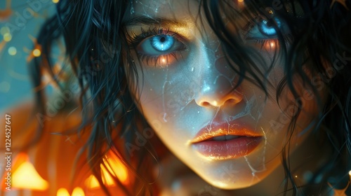 Captivating portrait of a young woman halloween party photography vibrant atmosphere close-up celebration