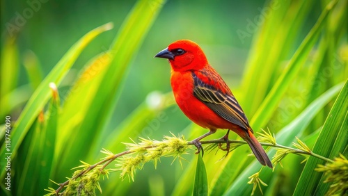 Captivating Red Fody and Weaver Birds Amidst Lush Greenery in Seychelles