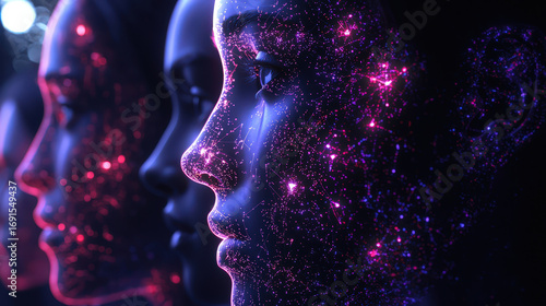 artificial intelligence, ethic, visualisation, cosmic, pattern, humanlike, technology, digital, futuristic, neon, abstract, science, innovation, design, creativity, datum, representation, diversity, profile, silhouette, glowing, star, network, connection, intelligence, machine, art, aesthetic, beauty, modern, exploration, identity, expression, evolution, culture, awareness, impact, society, tool, responsibility, interaction, perception, reality, virtual, environment, engagement, life events, collaboration