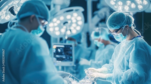 Capture a surgical team using robotic systems for precise and minimally invasive procedures, showcasing advancements in medical technology