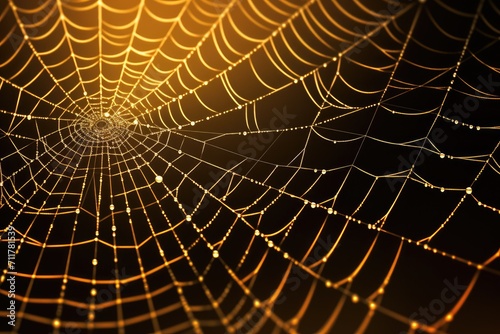 Captured in the morning light, a stunning spider web adorned with delicate dew drops reflects the beauty of nature, Intricate pattern of a spider web symbolizing web technologies, AI Generated