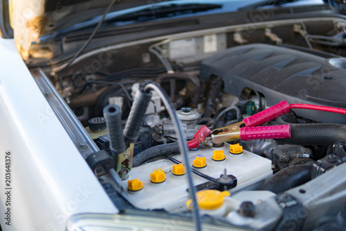 adult, auto, automobile, automotive, background, battery, black, blue, brass, breakdown, cable, car, care, change, charge, charger, clamp, connector, dead, dirty, electric, electrical, electricity, energy, engine, fix, fuel, garage, generator, ground, hand, jump, jumper, line, machine, maintenance, man, mechanic, metal, motor, negative, open, people, plug, positive, power, red, repair, rubber, screw