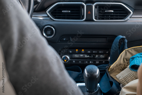 car dashboard with gear box close up