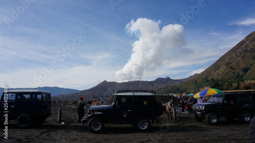 car, truck, sky, road, smoke, transportation, vehicle, landscape, travel, cloud, transport, old, cloud, nature, jeep, pollution, blue, highway, industry, mountain, vans, chimney