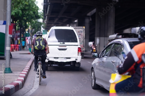 car on the road in rush hour city street
